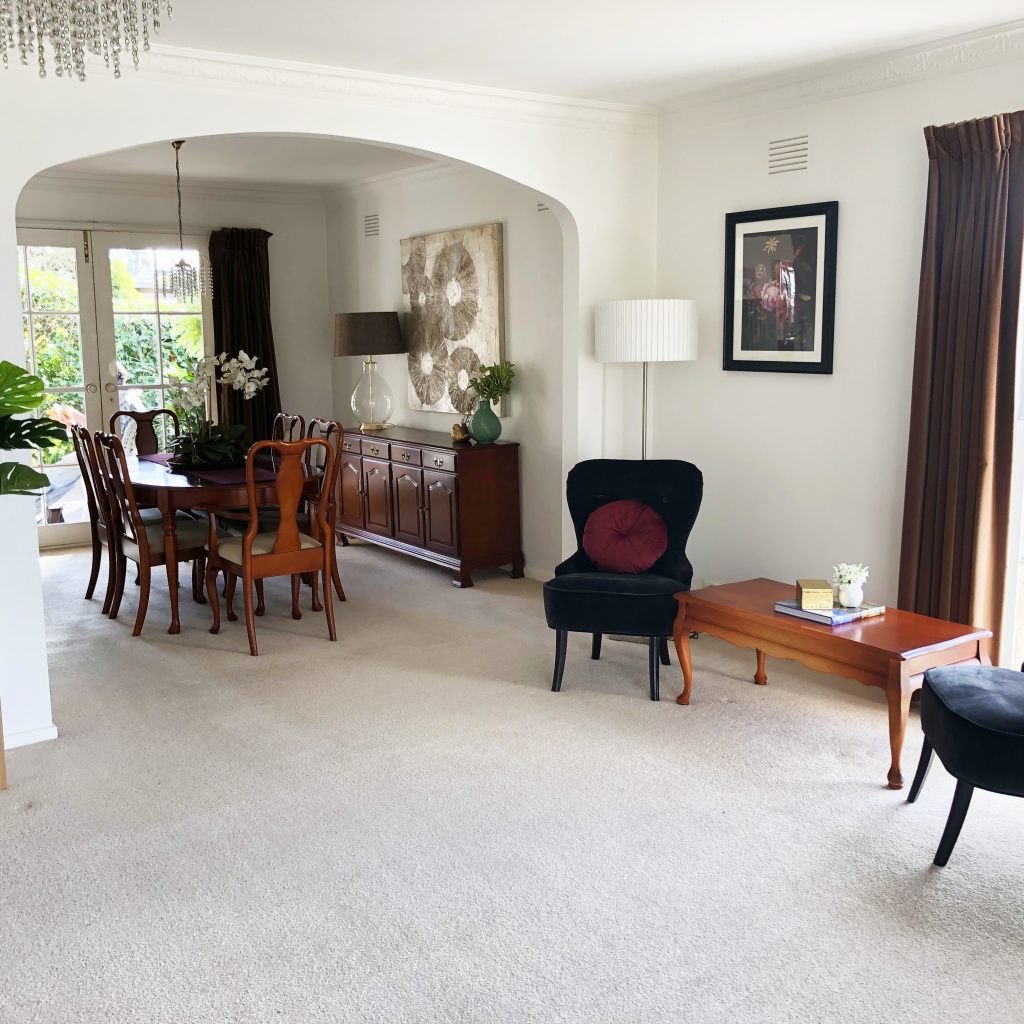 I visit many properties that are due to be put on the market, that often haven’t had their interiors touched in many, many years. This property in Heidelberg is an example of where the bones of the property are good and they have a few good furniture pieces that can be incorporated into the styling.